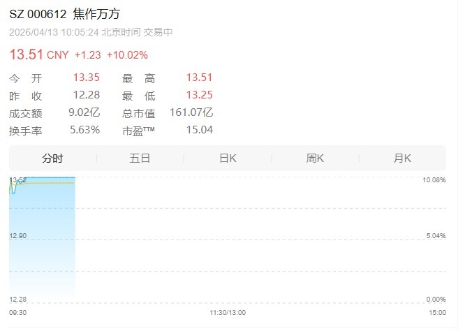 【大河财立方消息】4月13日,A股各大指数低开后震荡拉升,截至10:00发稿,上证指数跌0.1%,深证成指涨0.59%,创业板指涨0.88%,科创综指涨1.34%%。