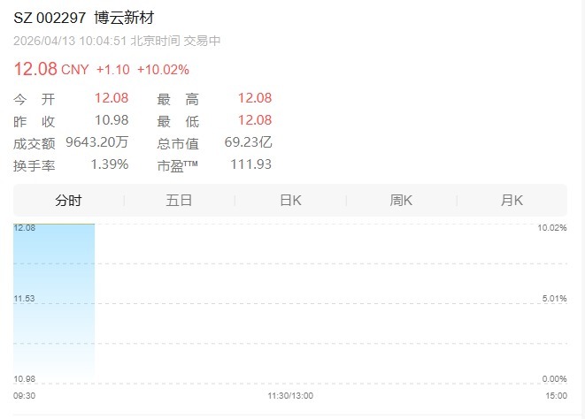 启明星辰、博云新材、焦作万方等多只业绩预增股,今日直线涨停。博云新材预计2026年第一季度实现净利润1.11亿元至1.42亿元,同比增长11194%至14349%。启明星辰预计2026年第一季度实现净利润3800万元至5400万元,同比增长2279.31%至3281.13%。焦作万方预计2026年第一季度实现净利润4.9亿元至5.2亿元,同比增长203.61%至222.20%。